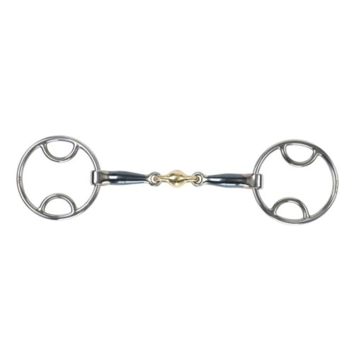 Brass alloy is formed when copper is alloyed with a harder metal, this produces a warm and durable material which is perfect for horse bits as it can aid salivation and be more palatable to the horse. An ideal bit for horses who are just starting their ridden career.