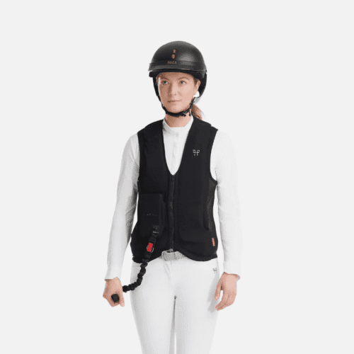 We have selected two 3-layer materials for their 20K/20K waterproof-breathable rating. The materials are strategically positioned to better resist abrasion resistance and improve comfort. The highly abrasion-resistant ripstop material is used for a large portion of the jacket. The stretch material is used in the back for ease of movement. Very functional, it has everything you need for equestrian practice: 3 pockets, a hood retention system, laser vents for easy air circulation, and more. And in cold weather, you can attach the Rider Vest or E-Kelvin to the inside of your Element for extra warmth using the snaps.